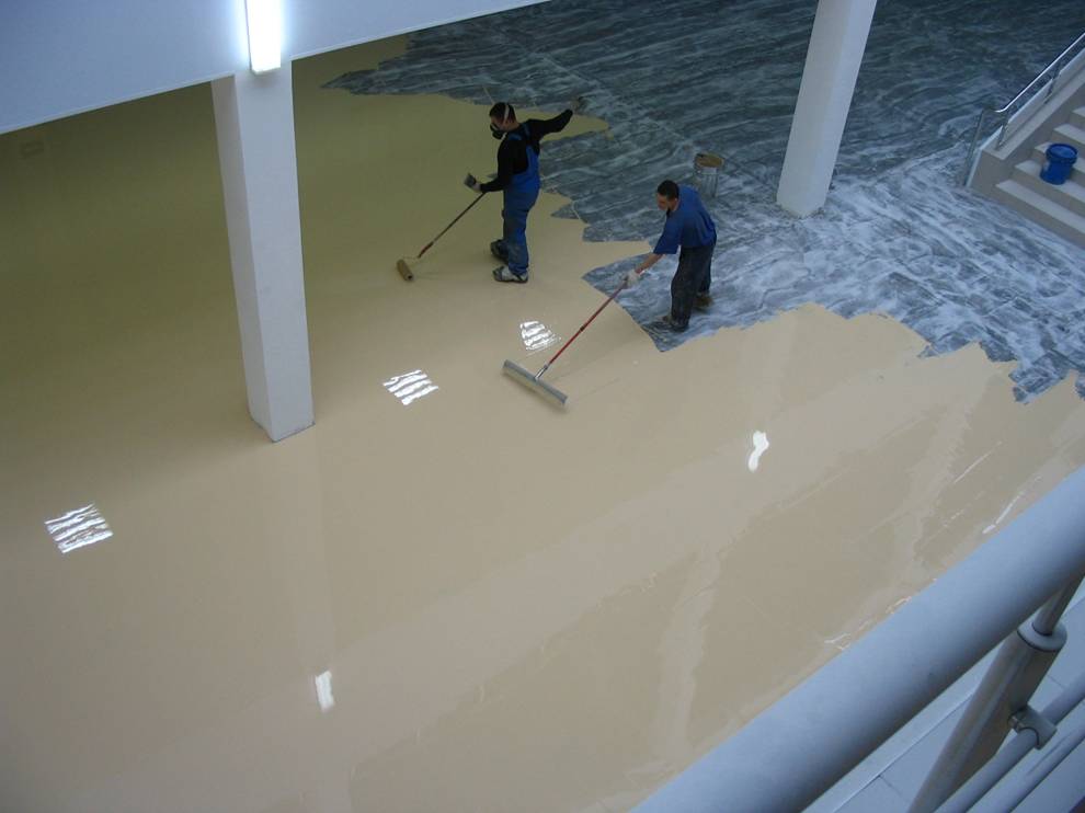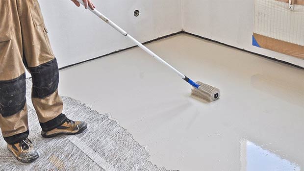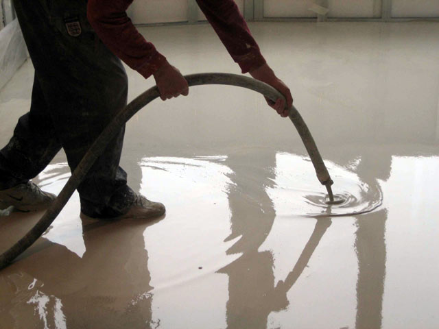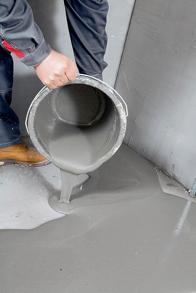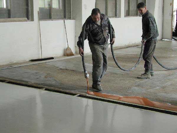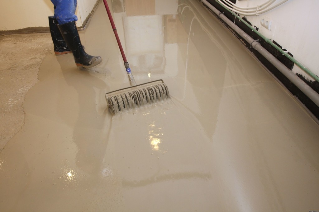 The liquid mixture is poured onto the prepared area evenly and continuously, it should be done in no more than 1 hour to avoid solidification of the solution. Then air bubbles are removed from the surface with a needle roller. After that, proceed to a similar work in the next section.