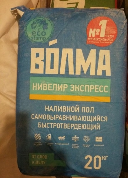 To choose a really high-quality product from the original manufacturer "Volma", you need to carefully examine the appearance of the product. All floor leveling mixes “Volma-Nivelir” are sold in branded blue packages weighing 10, 15, 20 and 25 kg, the manufacturer’s name is printed on the packaging, printed in a characteristic font, the most important features are also shown on the front side and the full name of the mixture is written. For example, “Self-leveling self-leveling fast setting floor” - for Volma-Nivelir Express. The composition of the product, its characteristics, conditions and method of operation are indicated on the back of the package.