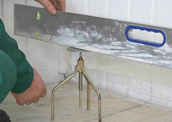 The thickness of the poured layer is indicated with the help of portable metal or plastic beacons-rappers with a scale. You can make a homemade leveling scale of improvised means, so it will be cheaper.