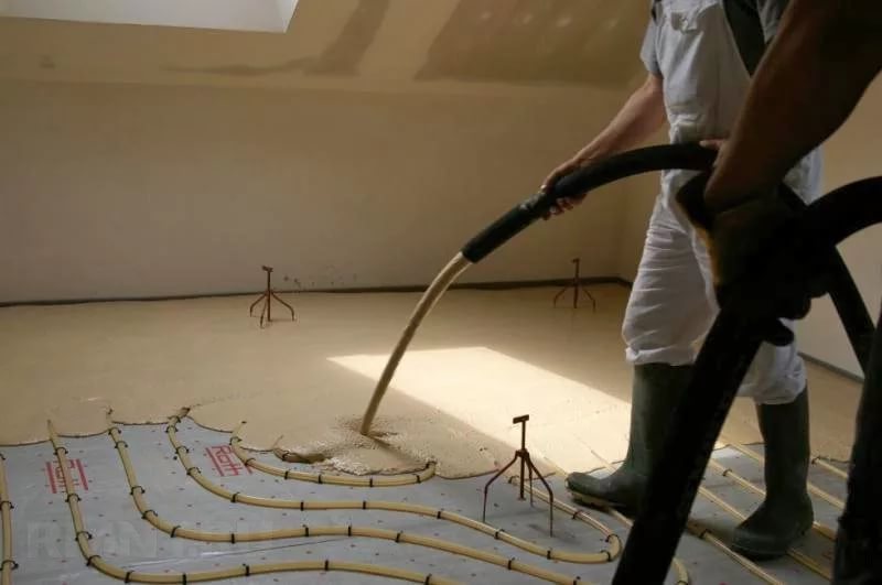 If the Volma-Nivelir Express mixture is poured onto the “warm floor” system, then the recommended layer thickness is 40 mm, if the heating is already installed in the base to be poured, the layer can be from 5 to 100 mm.
