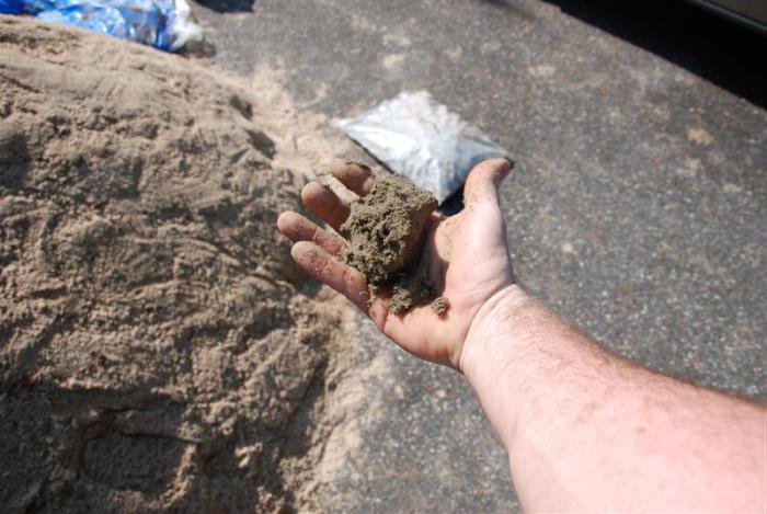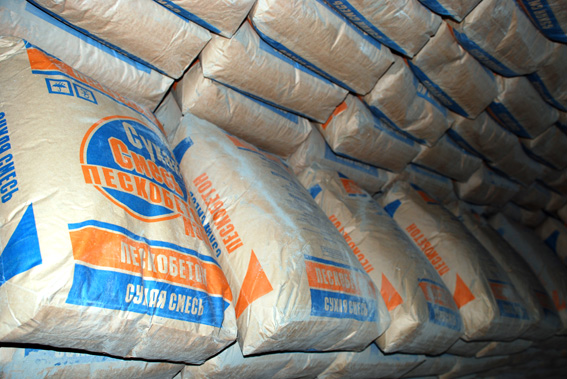 - Sand mixtureconsidered universal for leveling, plastering, finishing and other work processes. It includes Portland cement - sifted cement with the addition of minerals. His brand should not be below M500. Also sand mix contains sand (river or quarry) with fractional size not more than 1.5 mm. The main properties are water resistance, good adhesion, frost resistance, plasticity.