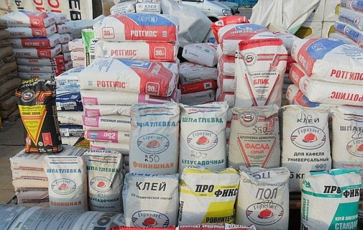 - Different types of construction products are used for puttying, priming, laying flooring, as well as thermal insulation and waterproofing. As a rule, this includes gypsum, cement, polymer compounds, lime and additional components to increase strength and moisture resistance. In addition, the elements are divided into concrete, mortar and dispersion, and differ in the size of grains. For mixing mixers are used cyclical or continuous type.