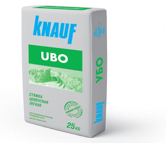 - Light mixture Knauf created on the basis of cement, polystyrene foam is used as a filler. It is used as a dry backfill, on top of which gypsum fiber is laid or poured bulk floors. The product is supplied in packs of 25 kg, the maximum allowable layer thickness is 300 mm.It is applied manually or with a special pump operating in continuous mode. The peculiarity is that the mixture for screed is suitable for a solid self-leveling floor. “Knauf” is a rather expensive material, which, however, fully justifies its cost.