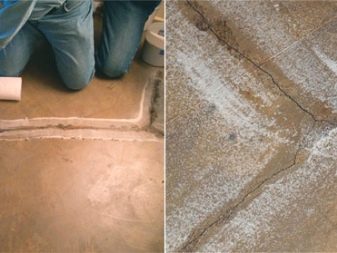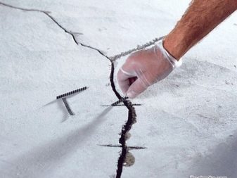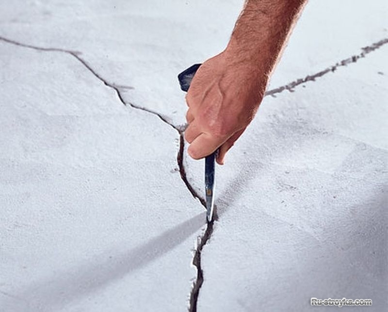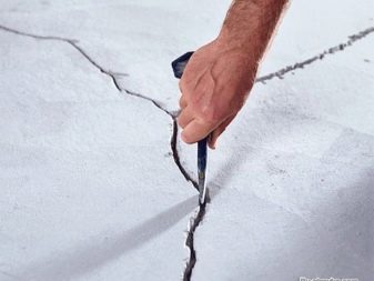 Cracking the surface of the screed can occur from uneven loading on the topcoat, shock and poor wetting of the concrete base during drying. If the floor surface is cracked, cracked or crumbling badly, you need to take emergency measures, because it is the cracks that are the most serious defect in the screeds. To eliminate the problem, it is necessary to deepen and widen the crack with the help of the grinder to obtain strong edges, while using the stone for working on the stone. Then follow the grooves perpendicular to the direction of the crack with a depth of 2 and a width of 15 cm. The surface of the recesses is thoroughly dedusted and primed.
