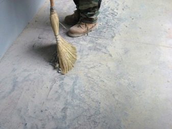 It is possible to cover a dusty floor with a specialized composition having a polymer base. The mortar is able to penetrate 5 mm deep into the concrete screed, completely preventing the formation of dust. The treated surface acquires excellent vapor-permeable properties, and is also characterized by high resistance to chemicals, sudden temperature changes and abrasion.