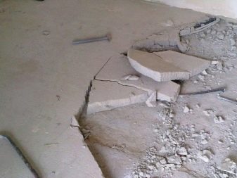 - overall weakening of the screed. It is characterized by the appearance of a large amount of cement dust as a result of a violation of the technology for preparing a mortar or of poor quality cement;