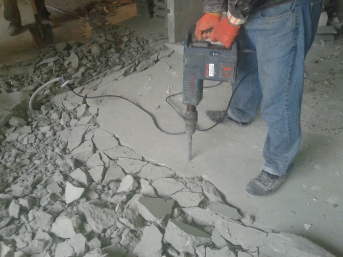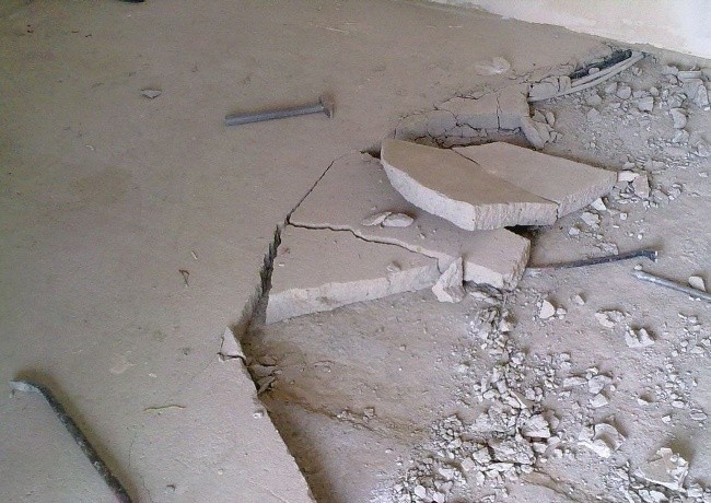 The second way to repair stratified screed is to completely dismantle the problem area., dedusting and priming the surface, followed by concrete pouring.The method is used in cases of impossibility of point repair with a large area of the damaged area.