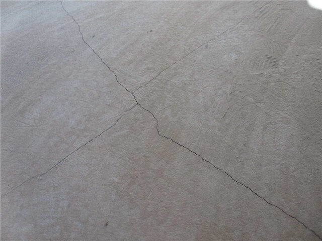 - detachment. Diagnostics of this malfunction is performed by tapping the floor surface with a hammer. In delaminated areas, the sound from the impact will be deaf, and dust will begin to flow through the cracks. Peeling can be expressed in the visual swelling of the upper layer and raising the corners after the solution has dried. The reasons are often uneven drying of concrete, the lack of a primer under the base and the use of low-quality cement;