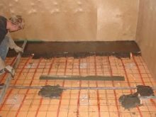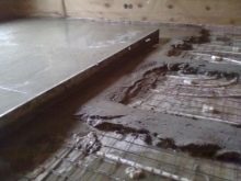 For a warm floor suitable wet screed on the basis of cement with sand and gravel. It takes a lot of time to dry it (up to 10 weeks). The composition of the cement mixture is recommended to add a plasticizer. It will help reduce the thickness of the layer, so the drying time will decrease.