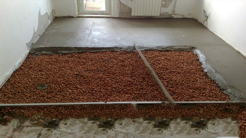 To carry out repairs in a shorter time, apply a semi-dry screed. Its drying time is 4 to 7 days.This is achieved by adding to the cement mortar special substances, called fillers. Cement mortar filled with expanded clay, fiberglass, basalt, polystyrene foam granules. They remarkably absorb water from the solution, reducing its amount almost by half.