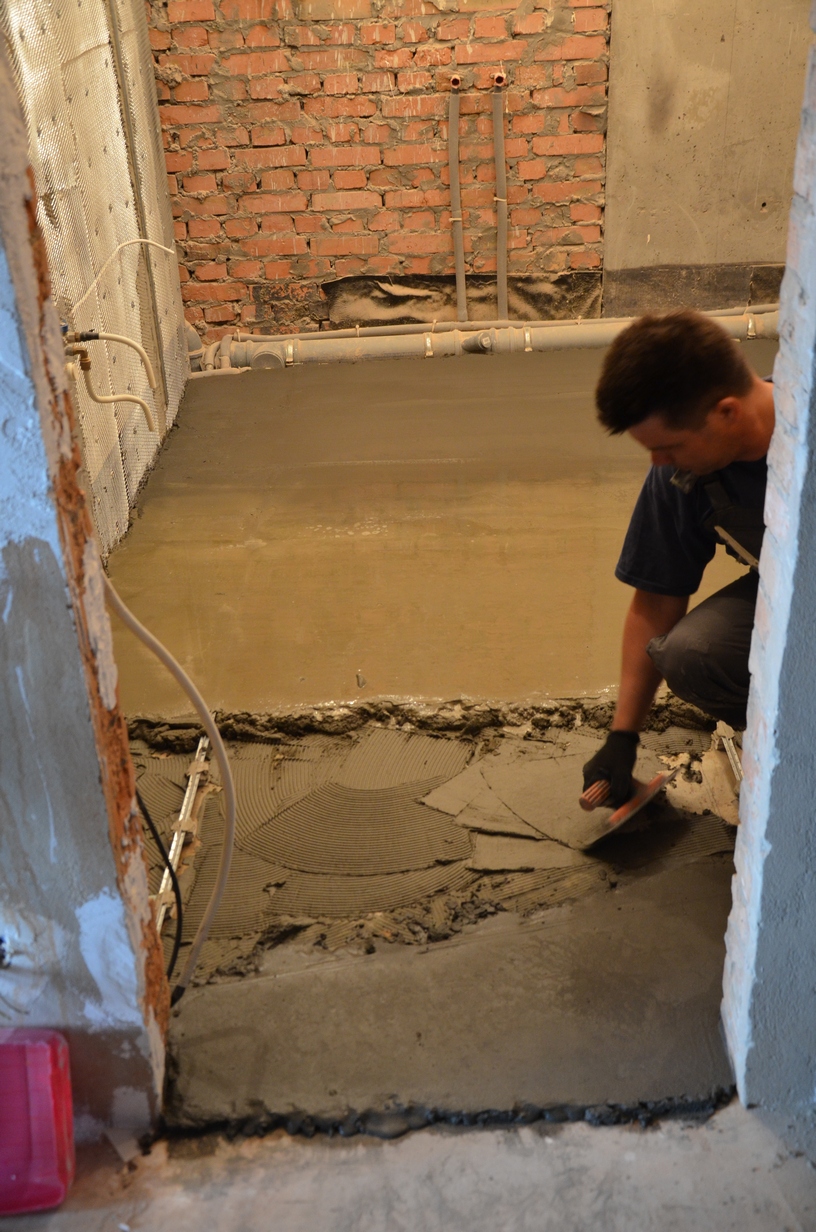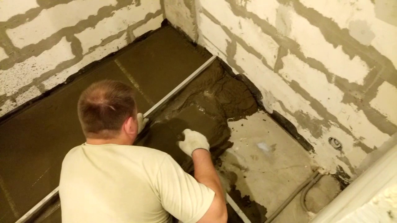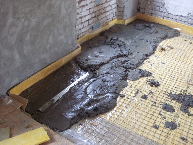 Require special attention to the screed in the bathroom. As a rule, in these premises in modern block multi-storey buildings there is good ventilation. To prevent cracks in the freshly laid composition, you need to create a moist environment.