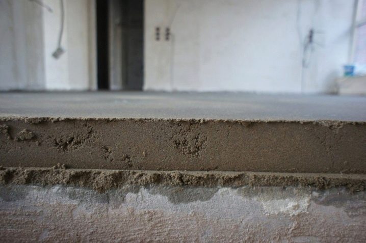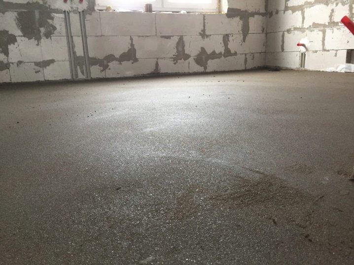 Such a screed itself plays the role of a heater, accumulating and giving off heat. Therefore, it can not be thin. Its average thickness is 6-7 cm.