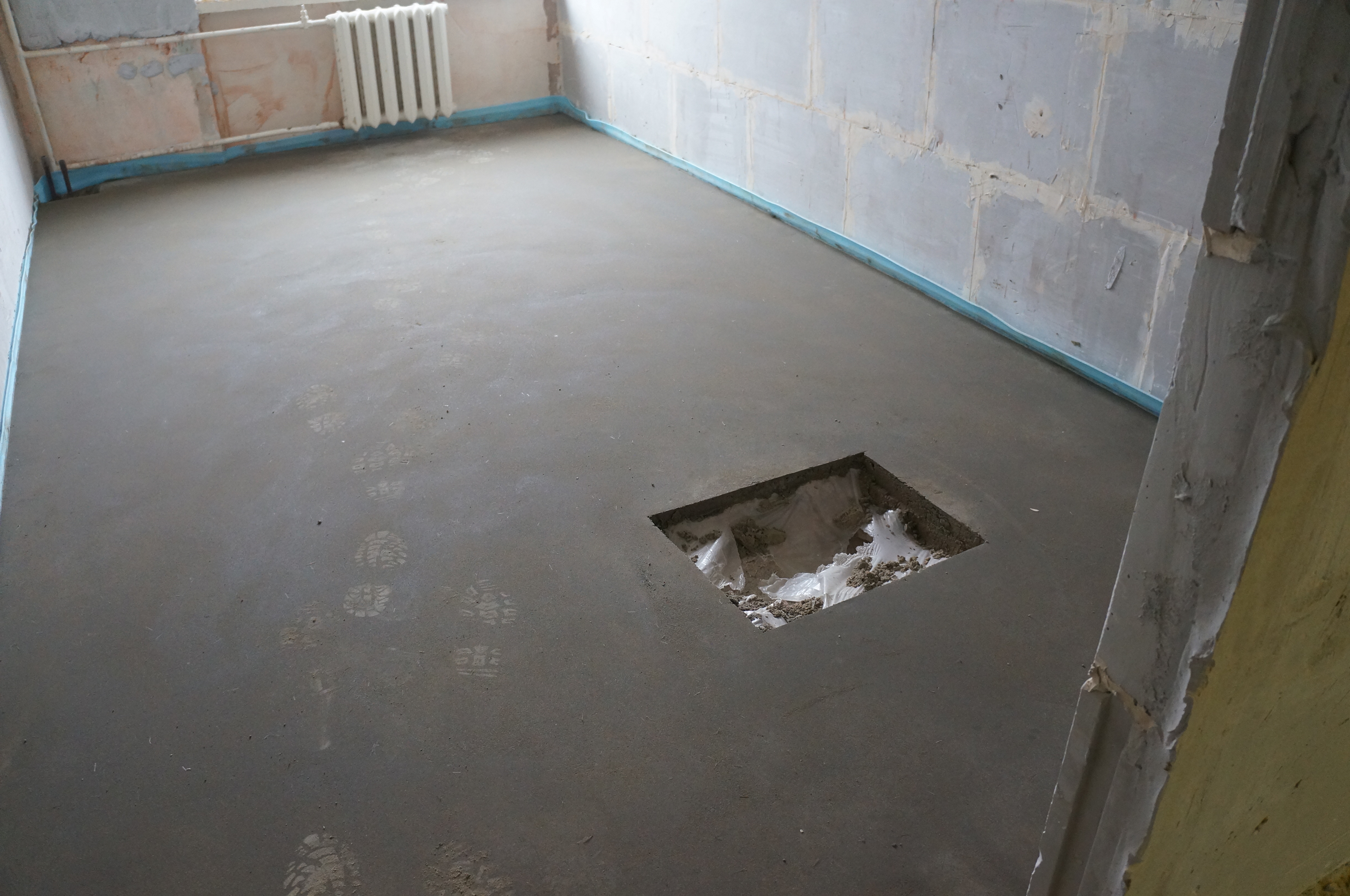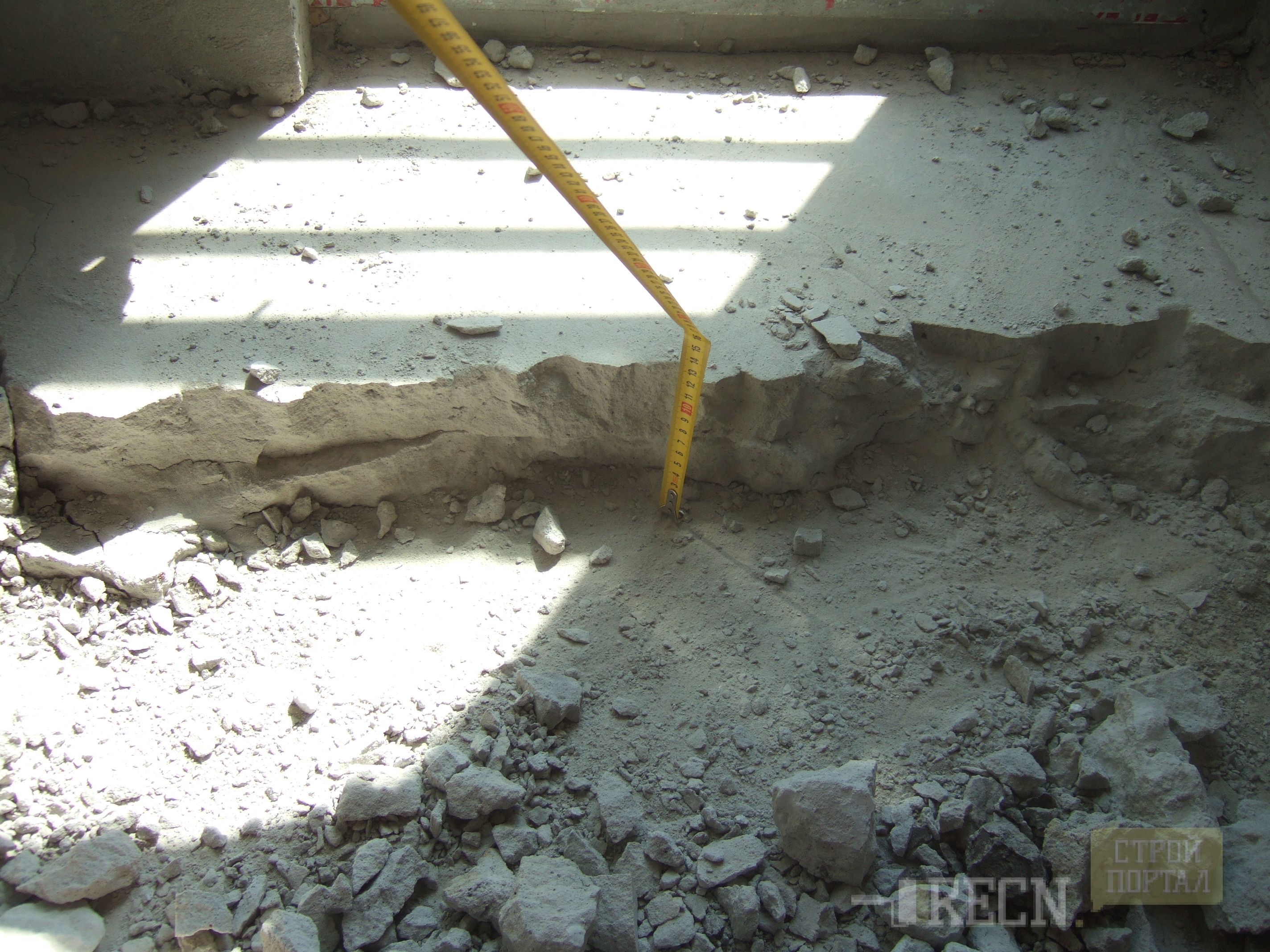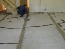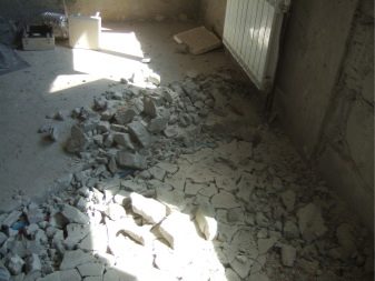 Under the dismantled layer can be both floor slabs, which greatly simplify the task, and the old screed. In the second case, the concrete must be carefully inspected. If it crumbles or there is a large number of defects in the form of cracks and chips, it is necessary to beat off the entire layer using a perforator. If the old screed is in good condition, only light thin-layer mixtures can be poured onto it.