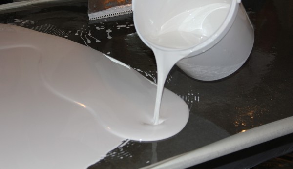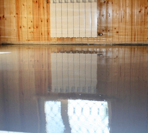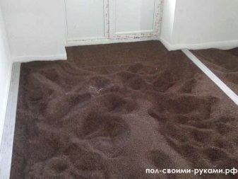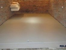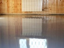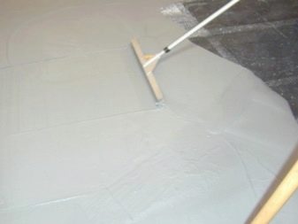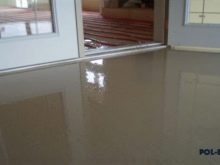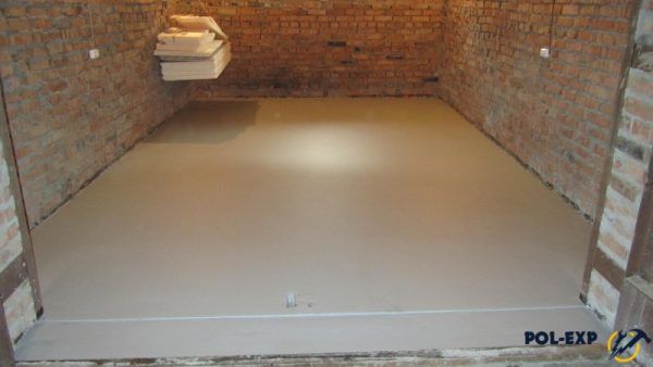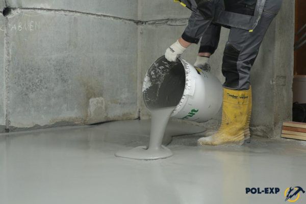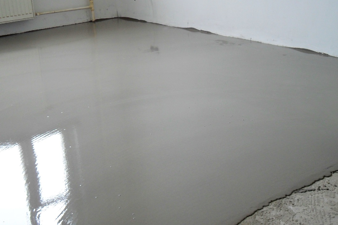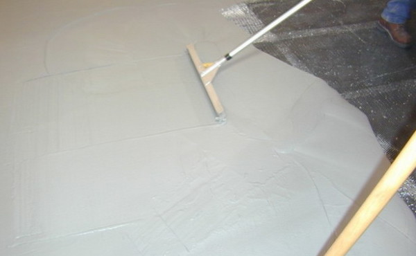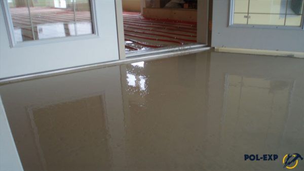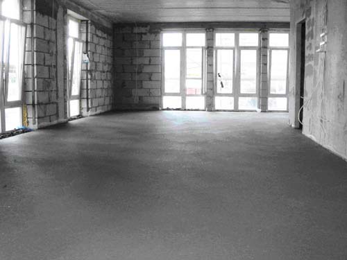 At the threshold of the room there must be a barrier so that the mixture does not overflow. After seven days, you can begin laying the flooring. Flooded finishing layer can be made independent flooring by adding colored pigments or drawing pattern.