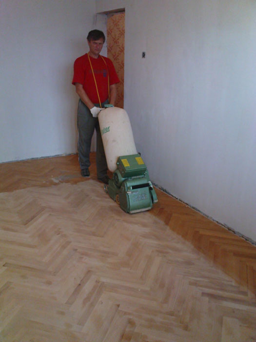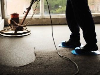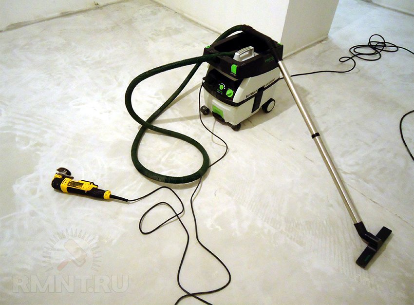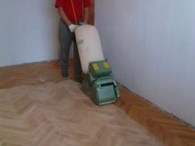Sander. It will be necessary for processing of the concrete basis before work. If the area of the room is small, at this stage you can use a metal brush instead.A concrete screed must be processed with a grinding machine after full curing.