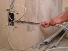 Lighthouses for plaster mix or cement-sand mortar, lined with small slides at a distance of 15-20 cm from each other, are mounted. Gypsum dries faster without affecting the strength of the coating, so it is more convenient to use it in residential areas.