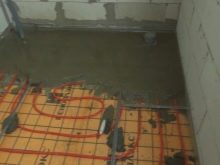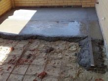 At this stage, the installation of a system of warm water or electric floors. Under them must be laid insulation in the form of plates to reduce energy loss. Reinforcing mesh is installed on special chairs, the height of which must be at least 1/3 of the thickness of the screed.During installation, damage to the waterproofing layer must not be allowed.