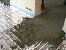 Semi-dry screed is a concrete or cement-sand mixture with a minimum amount of water. For the device of such a floor requires considerable experience and a lot of special devices, so this method is mainly used by professionals.