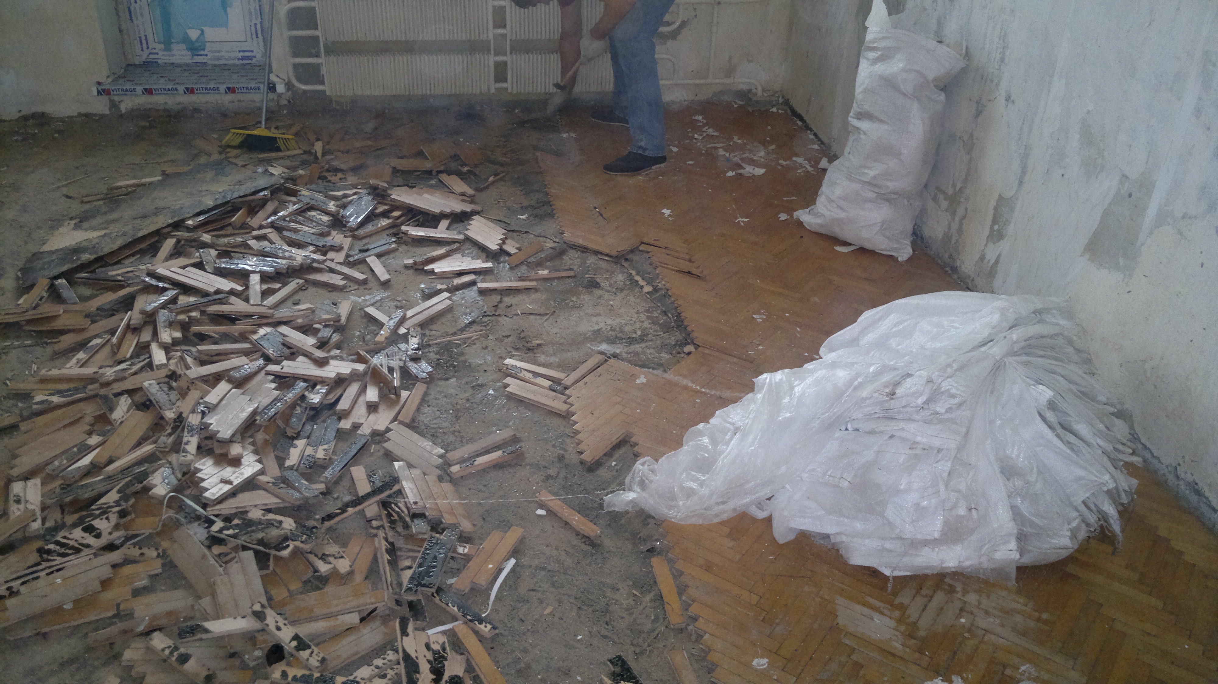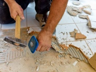 To prepare the room for the screed work begins with the dismantling of the old coating. Linoleum and wooden floor boards are torn off quite easily, but the tiles will have to be beaten with a perforator. Skirting and doors along with the slopes also need to be removed.