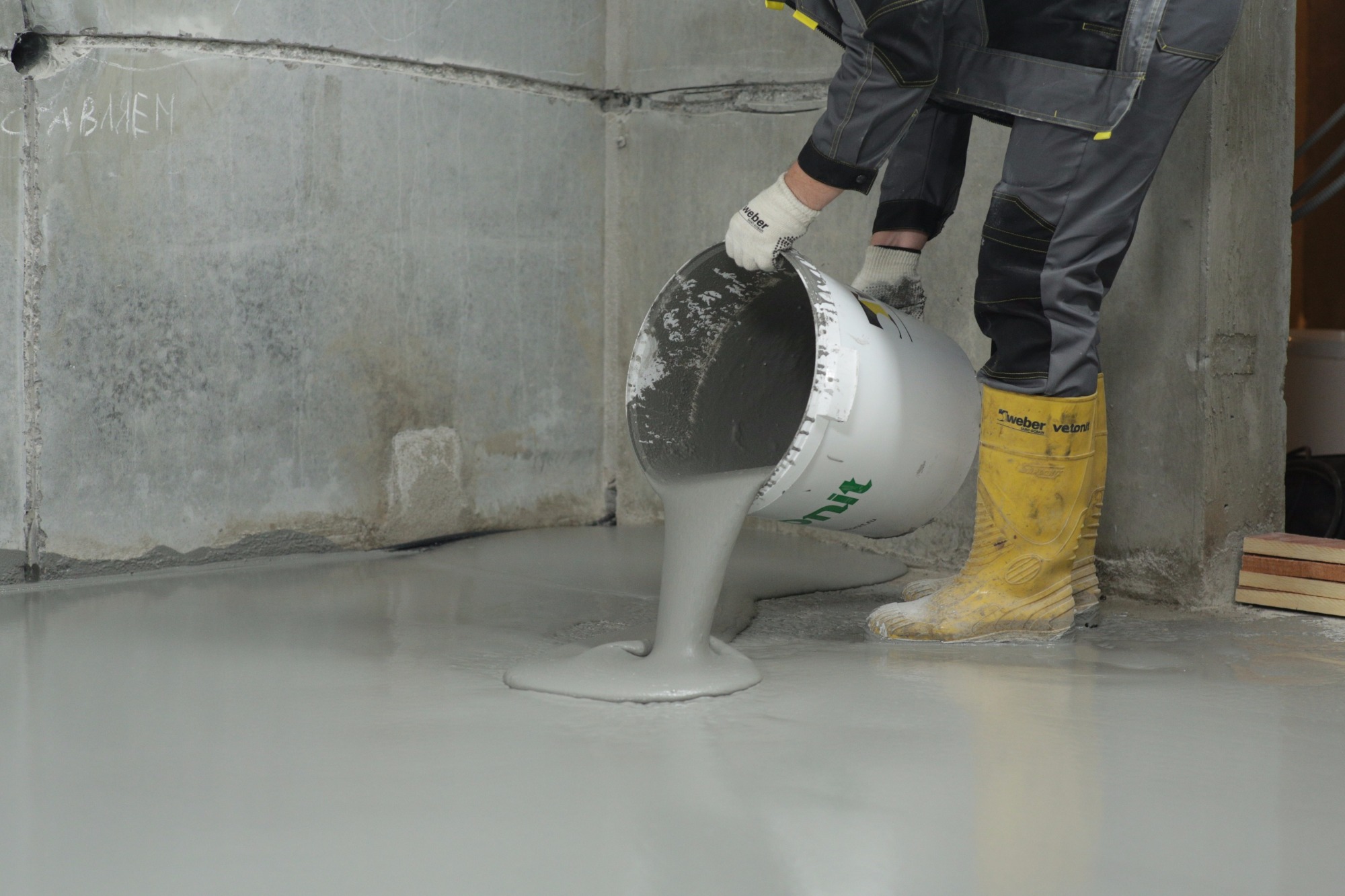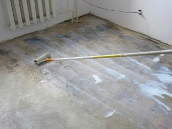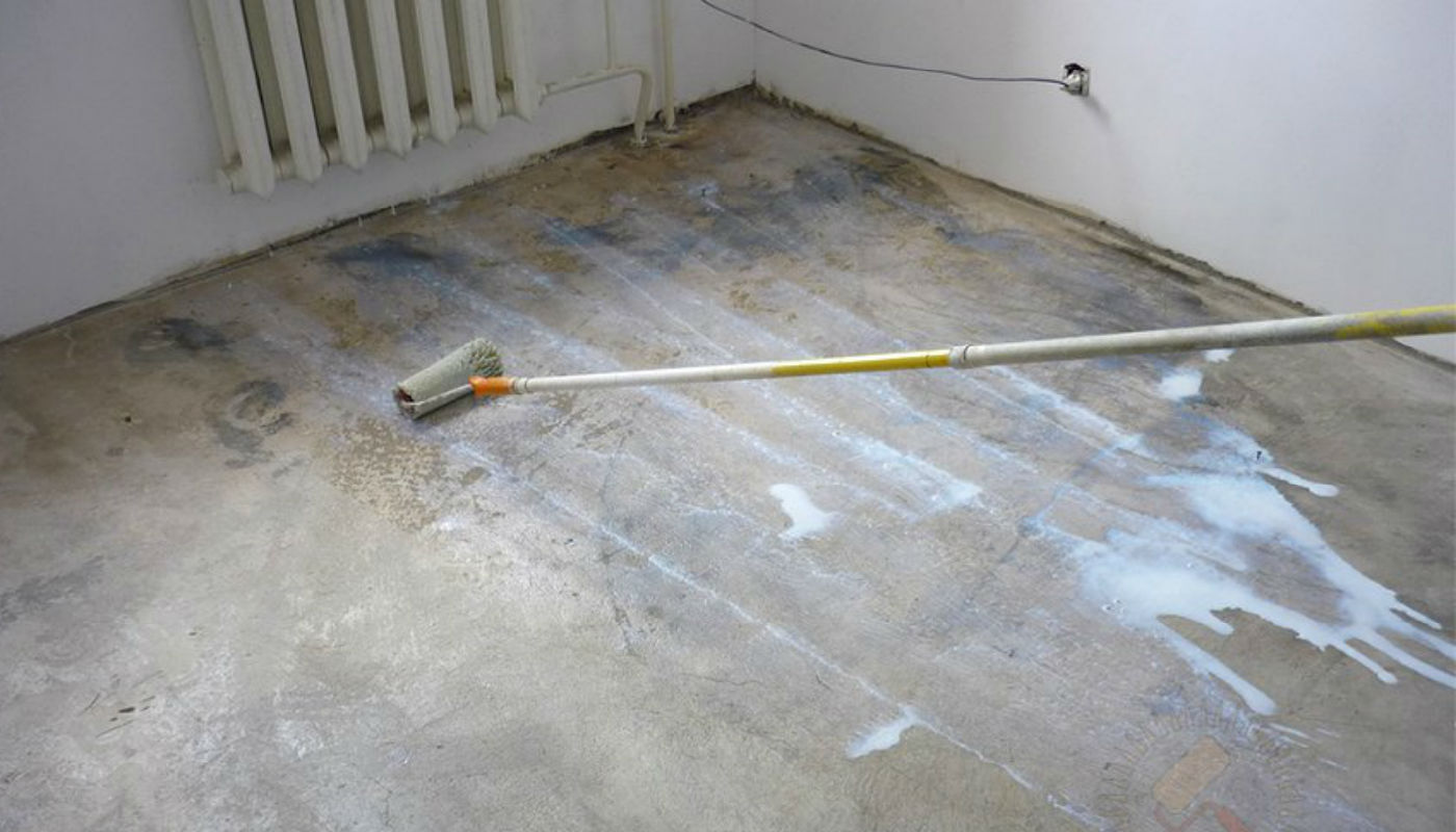 The next stage is surface treatment with a primer using a roller or a paint brush. Under the concrete or cement-sand screed, any universal primer or concrete contact will suit; under self-leveling self-leveling floors you need to use a special polymer primer. With a multi-layer screed priming the surface is necessarily before each layer. The average drying time is two hours. If necessary, you can apply a primer with a second layer after the first is completely dry.