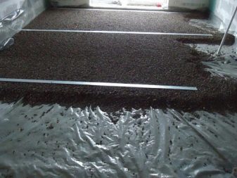 Layers of crushed stone or expanded clay are recommended to be powdered with crushed stone or sand. The last layer is well leveled and control the absence of sharp corners on the rubble. If sharp stones remain, the waterproofing material may tear. For better adhesion, it is recommended to shed the top layer with liquid cement and wait for it to dry.