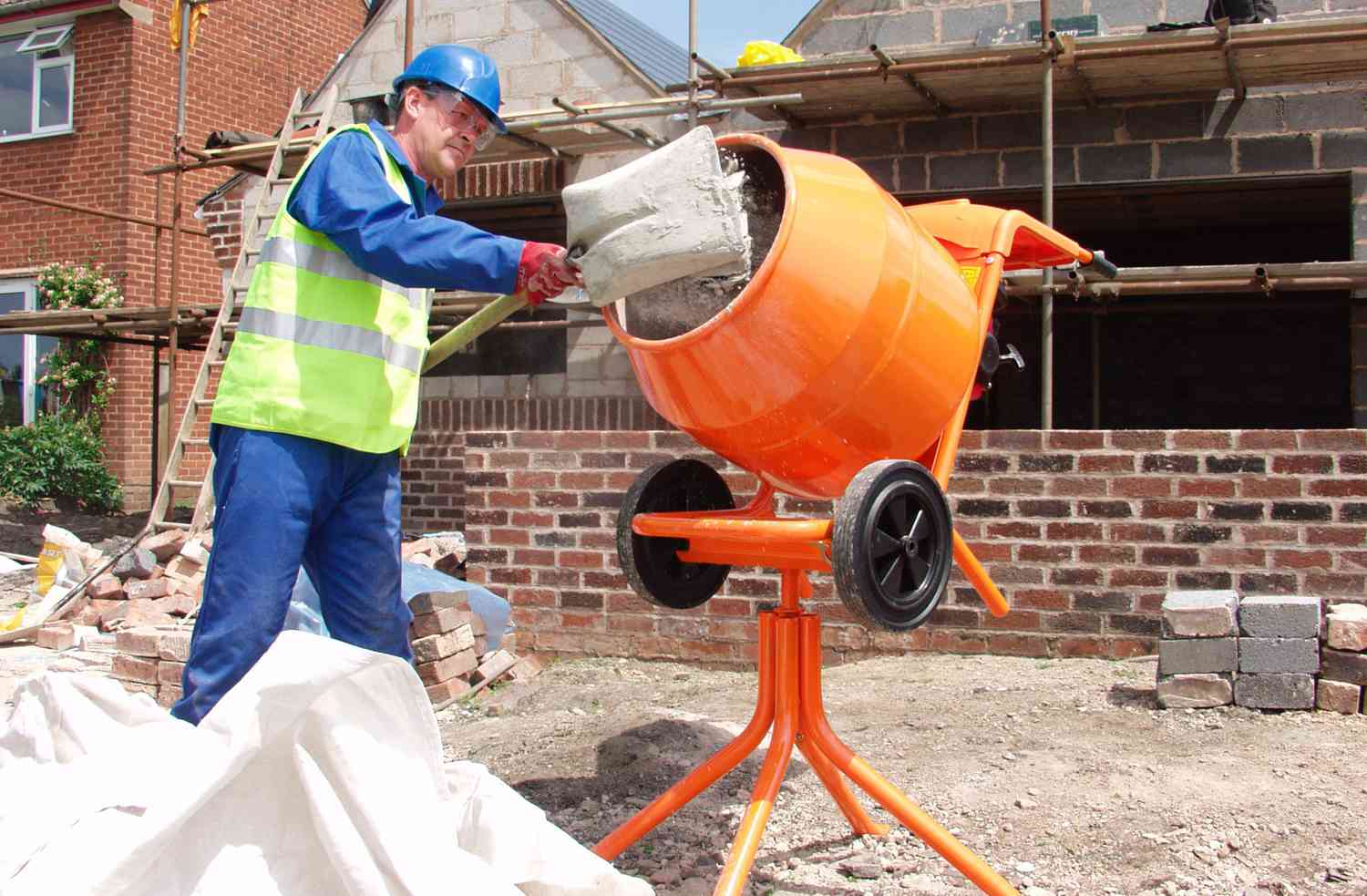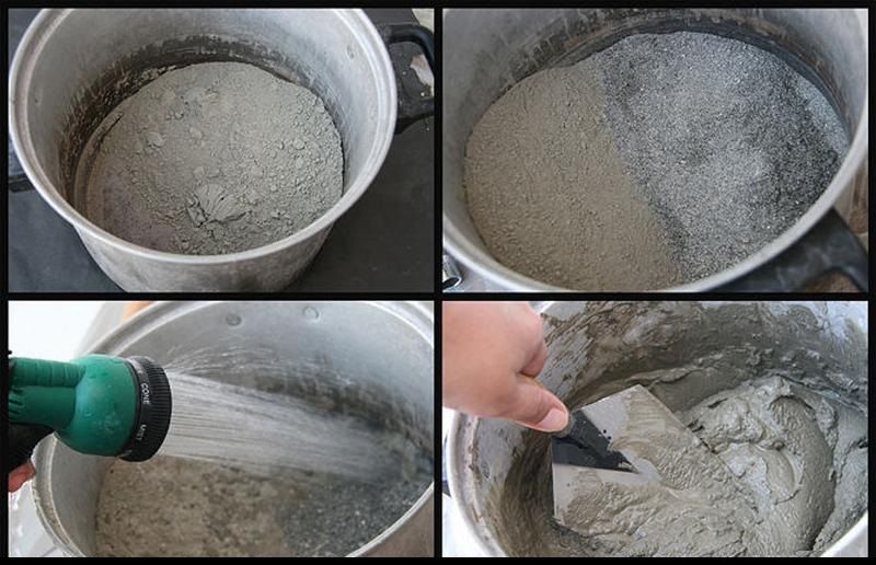 Concrete mortar is denser than cement-sand, therefore, it is much more difficult to knead it using a construction mixer.If opportunities permit, it is better to rent a small concrete mixer. The simplest composition of sand and cement is done like this: for 10 kg of a mixture of 3 parts of sand and 1 part of cement, add 2 liters of water and mix. To enhance the strength per 100 kg of the mixture, you can add 50 g of fiberglass. It is necessary to use solution within 1-1,5 hours, it will reach full hardening in 28 days.