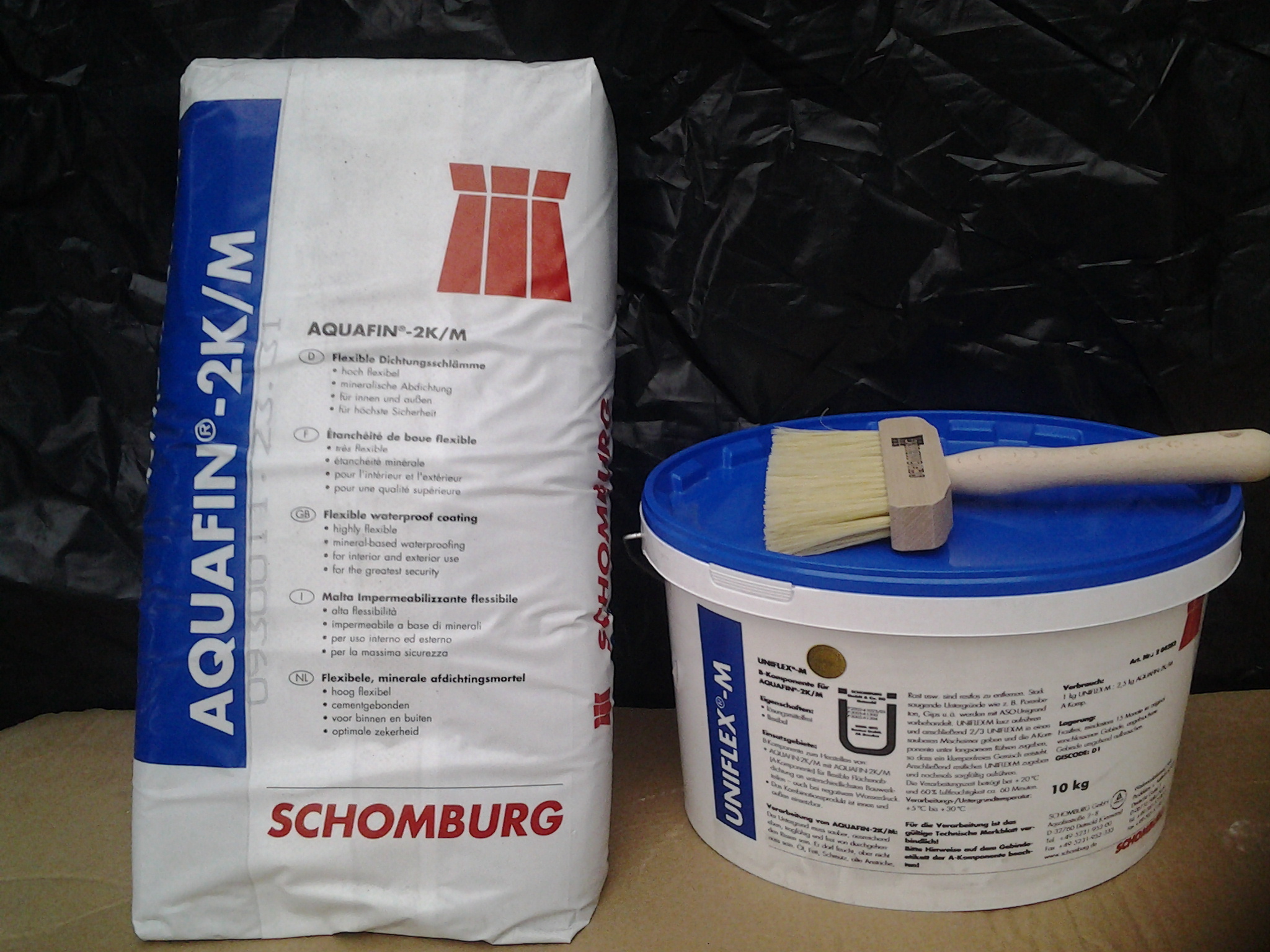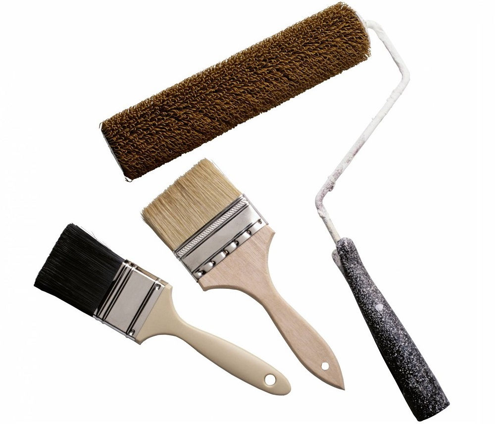 Rollers and brushes for the application of primer and waterproofing compounds.