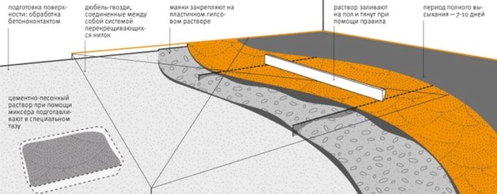 Tied or solid screed. In this case, direct adhesion of the material to the base coat occurs. It is important to ensure good adhesion and uniformity of the screed.
