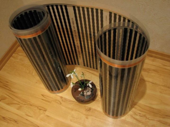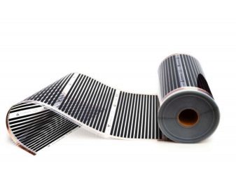 The company produces both striped film and solid. Roll thickness - 30 and 64 cm. Power - from 130 to 620 watts. It is good to use such a film to insulate loggias, to mount around the perimeter of windows and doors.