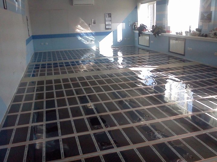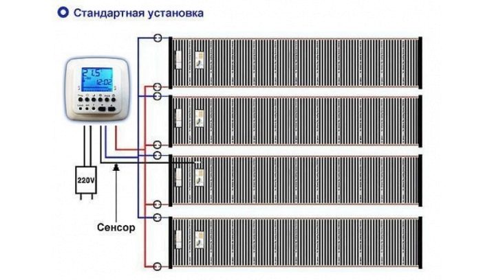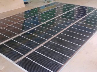 It is possible to reduce the consumption of wires, if the contacts are directed towards the regulator. A clip is fixed on the copper strip, its side is located inside the coating, the second is on top of the copper strip. Cut lines are isolated by bitumen. The film is fixed using electrical tape. This requires aligning the base, put on the floor heat-reflecting material.