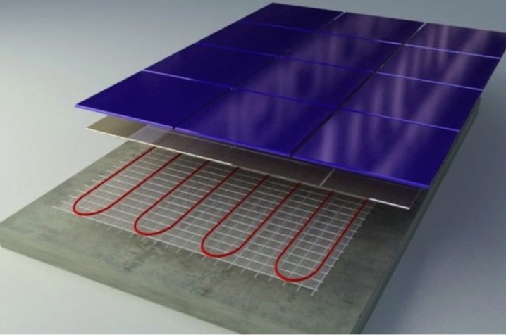 The rod floor is specially designed for tile coating, therefore in this case it is not necessary to do a coupler. For ceramic tiles, rod infrared heaters are created, which are connected to the thermostat. They are mounted ceramic coating.