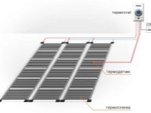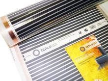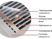 It contains a special thermal film and a polyethylene thermal film with strips of carbon paste. The last parts are interconnected by special copper bars.If the heating sheet is in the on state, then from it comes infrared radiation (wavelength of 5-20 microns).