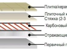 Installed similar structures without laying concrete screed. Otherwise, such works are called "dry installation." Currently, manufacturers have appeared on the market, making special films that are completely covered with carbon material from above.