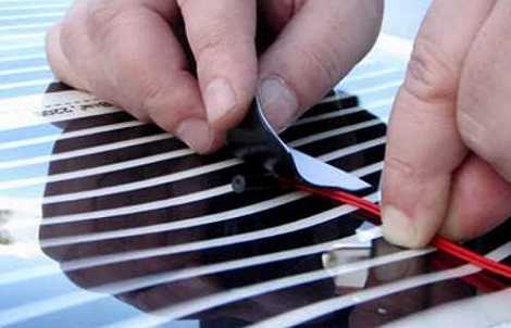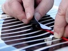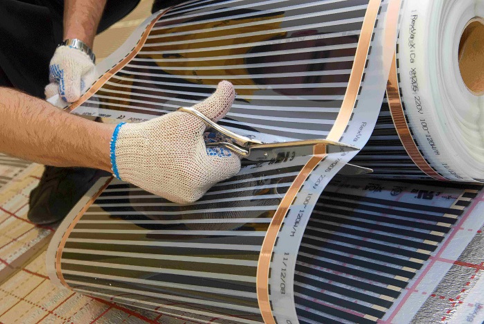 First, the thermal film must be rolled out in such a way that the copper strip “looks” down. It should be cut into individual straight pieces of the required size in specially provided for this part.