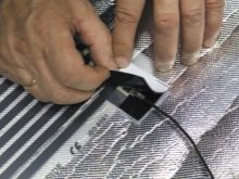 A special sensor temperature controller, as a rule, comes in a set with the main thermostat.First you need to install it. To do this, install the part in the lower part of the thermal film (directly onto the black heating strip), and then fix it with bitumen insulation. Isolation is necessary to make a cut. It is necessary in order to avoid the appearance of various irregularities and bumps.