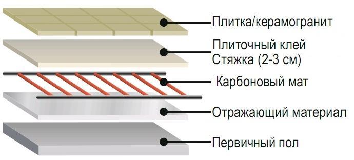 In such cases, it is necessary to adhere to one important condition - the layer of tile glue and the tiles themselves must exceed 2 cm. This is necessary in order to create a sufficiently rigid layer that will protect the film of the infrared floor from various damages.