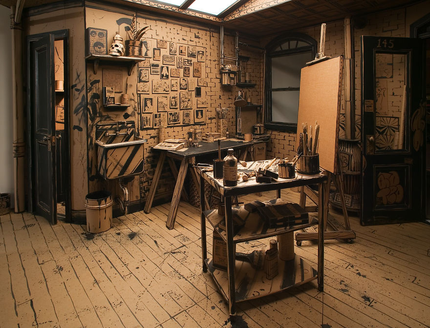 So, in such conditions compact workrooms or cozy sitting areas with small sofas, coffee tables and even bookshelves / shelves look great.