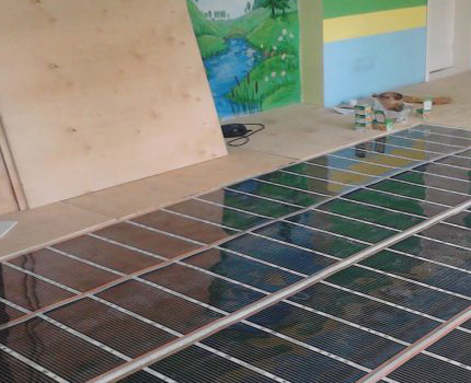 - If you plan to install infrared floor heating under soft flooring, then you will have to additionally stock up with an intermediate lining that is resistant to mechanical damage. Most often for this purpose sheets of plywood, laminated chipboard or OSB are used.
