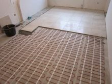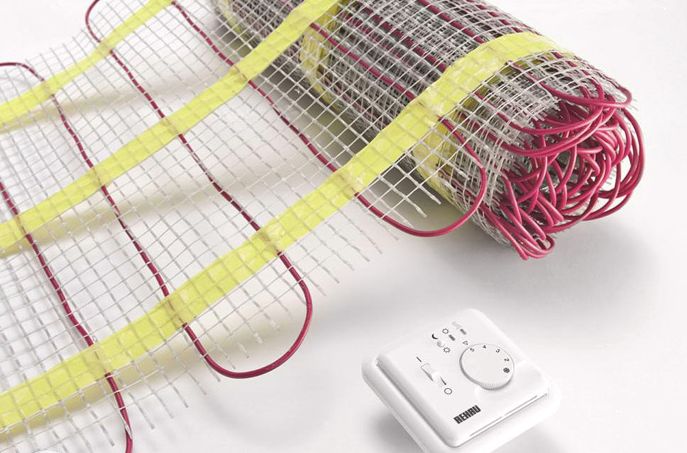 - Convenience in the calculations. No need to calculate the length of the cable and distribute it over the surface. It is enough to correlate the dimensions of the room and the netting fabric, measure the required length and the number of lanes. The heating mat is laid directly under the tile, due to which the surface heats up quickly. Thermostats allow you to automatically set a comfortable temperature.