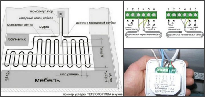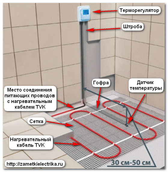 The efficiency of the floor mat largely depends on the correct installation of the thermostat. Thermal sensors protect the cable from overheating and allow you to set the desired temperature. The installation of the thermostat involves the creation of a special notch in the wall and on the floor where the heating mat wires will be placed.