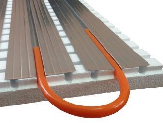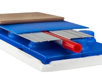 Thermoplates are considered the main element of the system, which is used for laying the "warm" floor.They are metal profiles and are suitable solely for substrates leveled using the dry method. Distinguish aluminum and steel heat-removing plates, outwardly they have a simple look, are available in different sizes and configurations. Depending on the type of production, this element may have a different structure, but its main indicators are: