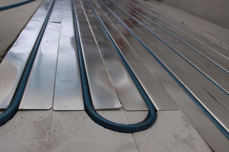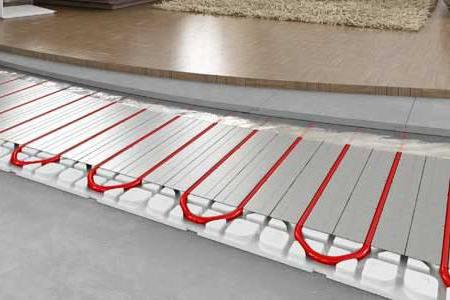 Heat is distributed through the system as follows: a pipeline is placed in the channel, it transmits the required temperature to the profile surface, and that, in turn, provides the finishing floor with heat. It is worth noting that this process does not require concrete pouring or cement screed.