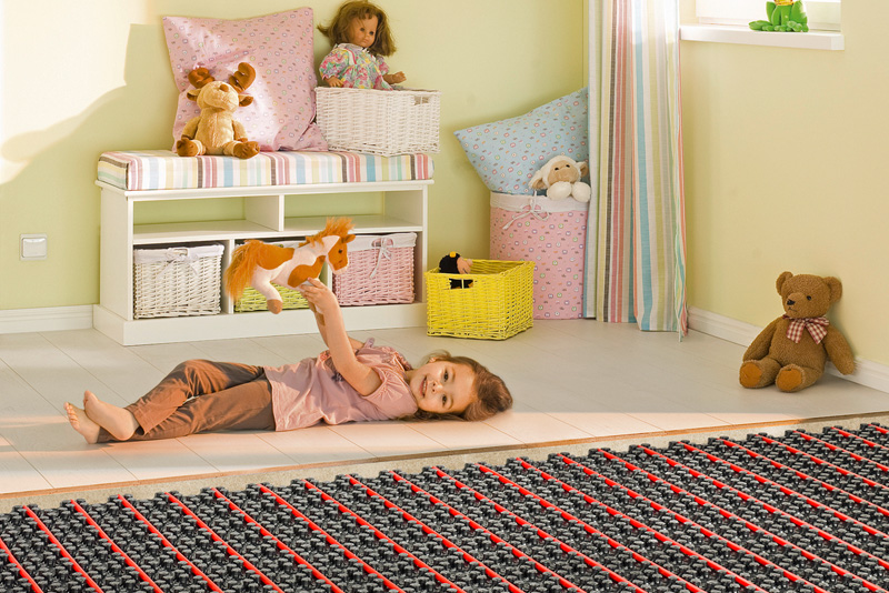 - Electric floor heating is most relevant in the nursery. It’s no secret that babies most often play on the floor, and in the cold season it’s simply impossible to do without such a warm and safe floor.