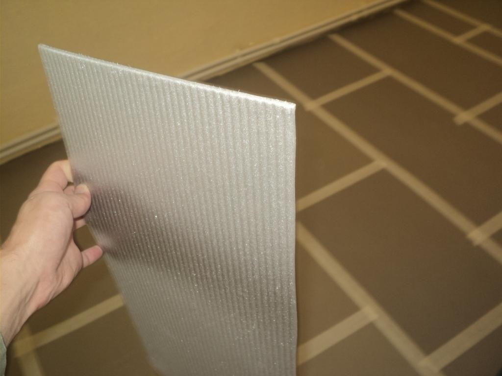 - Polystyrene backing more simple when compared with the previous version. It is often used because of its availability and good thermal insulation qualities. Usually implemented in the form of sheets. The substrate of this synthetic material may be ribbed or smooth. Ribbed quencher is used when installing a water heated floor.