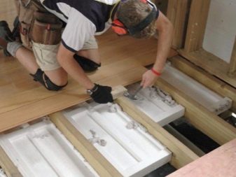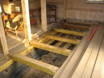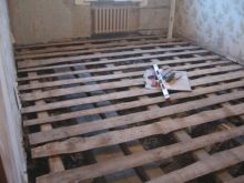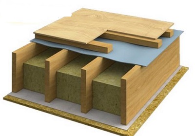 - Without dismantling the flooring. Lags are laid on the old floor, between them - insulation and a new floor covering is put on top.