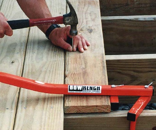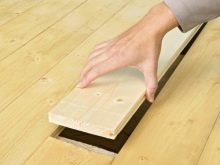 You should raise the board at each attachment point to a small height, then walk along the board again, repeating this operation. When the edge is already noticeably raised, substitute an additional support for the tool and raise the entire board. Wherein It is important to ensure that the tongue or spike of the board is not damaged.