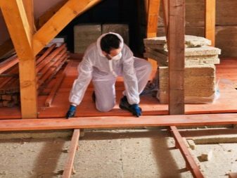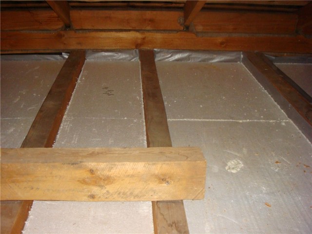 After that, to ensure a more reliable retention of the heat insulating material, it is necessary to fix it from the bottom with a light hem. The most economical option is fiberboard sheets, but low-grade plywood, edged boards and a range of other materials are also suitable. You should not use gypsum plasterboard (plasterboard sheet) because of its high hygroscopicity and fragility.