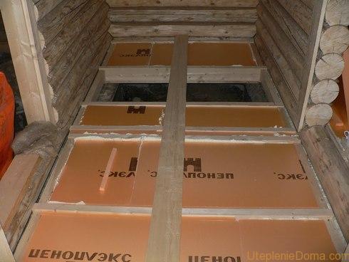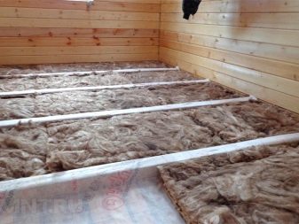 In the space between the lags fit insulating material. At warming from above the choice is not limited to sheet heater any more. In this case, it is possible to put on the floor not boards, but plywood of sufficient thickness, then the floor will last even a little longer.