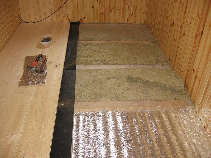 At the end of the laying of the heat insulator, regardless of how hygroscopic the material is, you should lay the polyethylene or other moisture-insulating film again, and after that you should mount the boards.