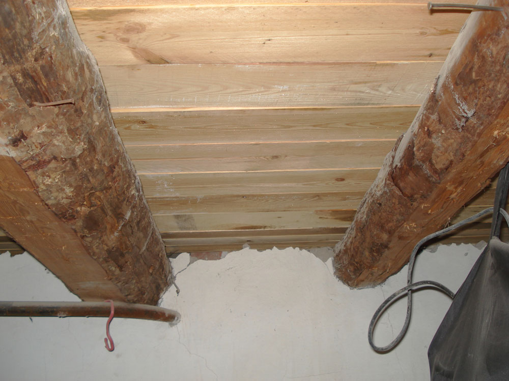 As with the inspection of the underground space, the areas affected by the fungus, but having retained their strength, need to be cleaned up to healthy wood and saturated with antiseptics.